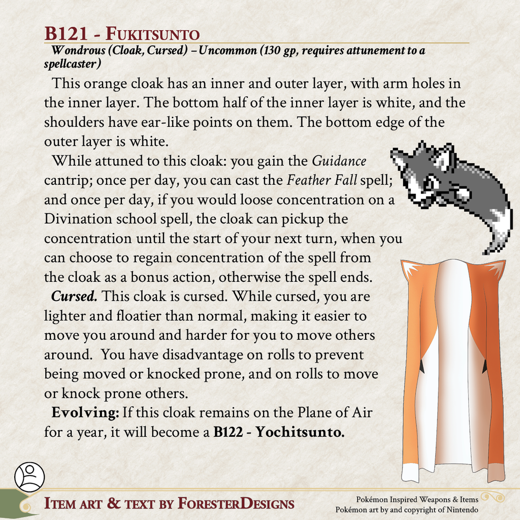 My #TTRPG #Pokemon #MagicItem of the Day in both #DnD and #PF2e, with a #Windsox #cloak to be lighter!