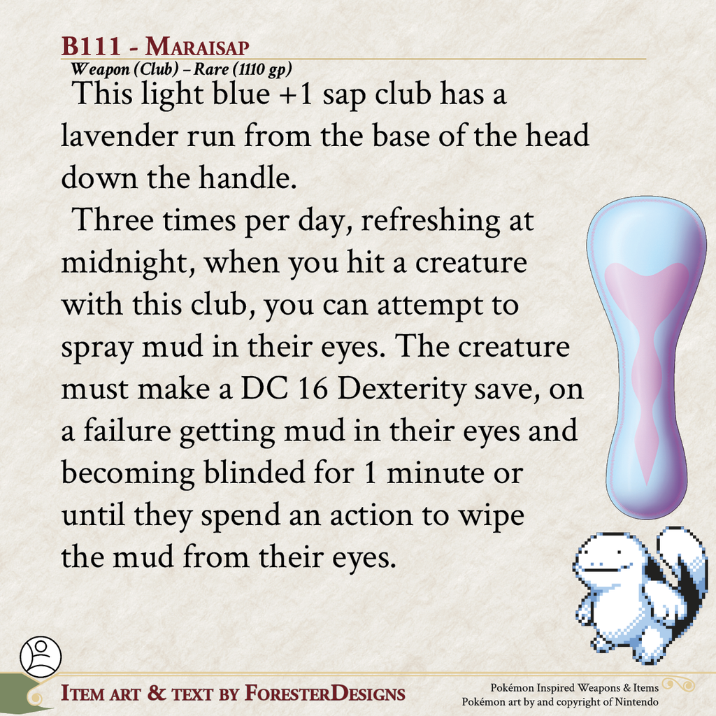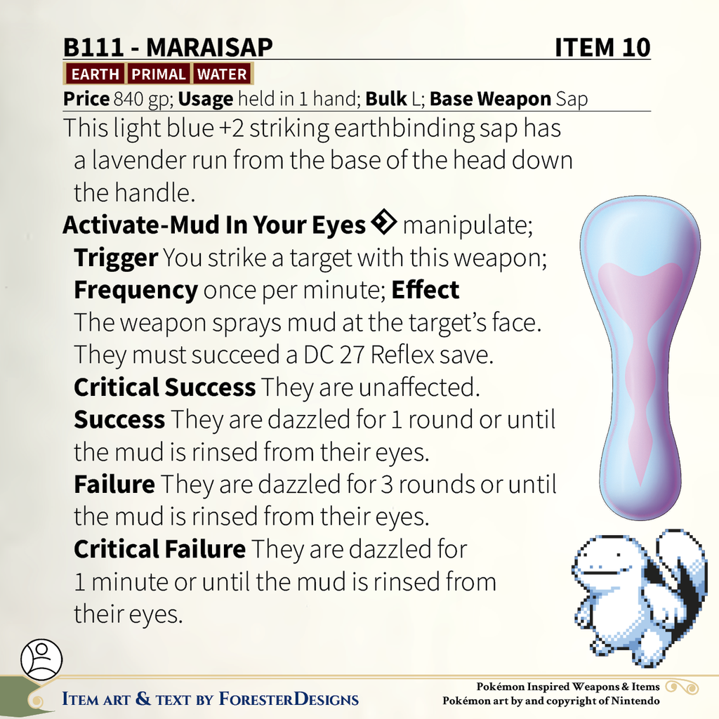 My #TTRPG #Pokemon #MagicItem of the Day in both #DnD and #PF2e, with a Beta #Quagsire #sap to spray more mud in your enemies eyes!