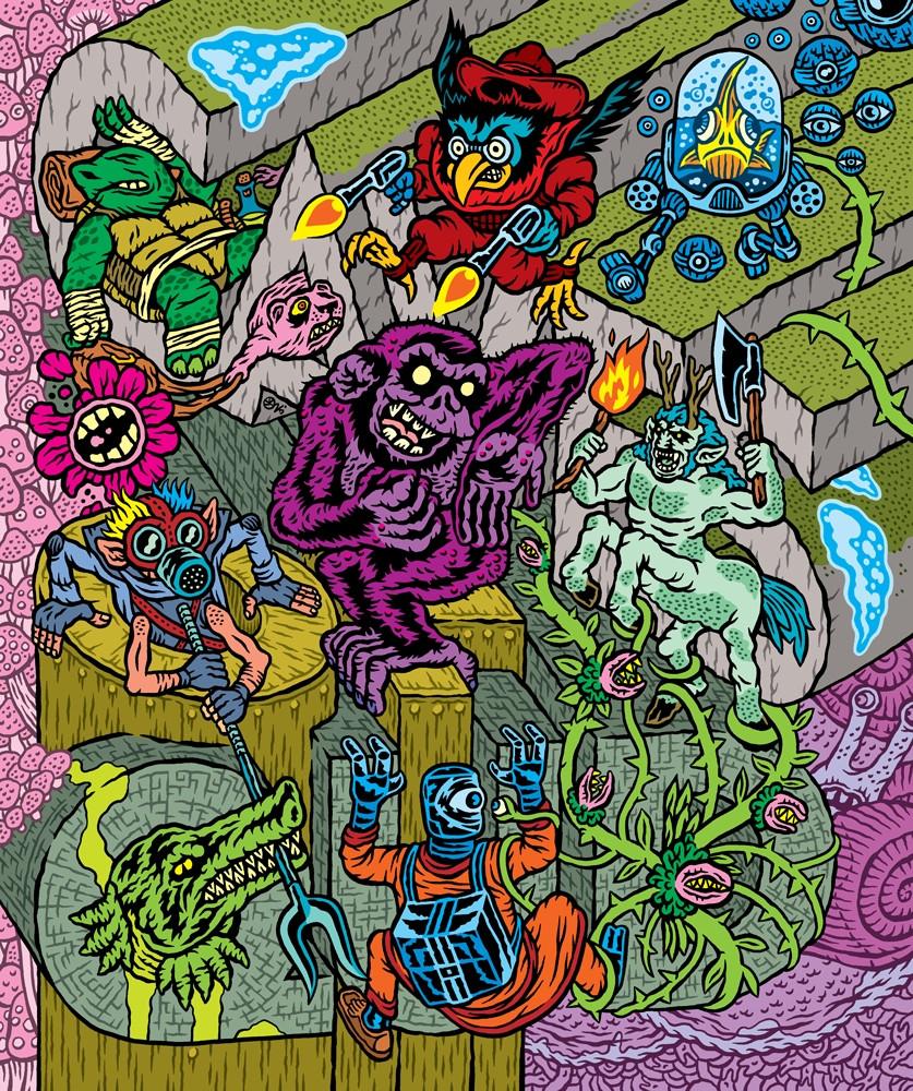 2) awesome art for a feature on Caves of Qud, by Lukasz Kowalczuk
