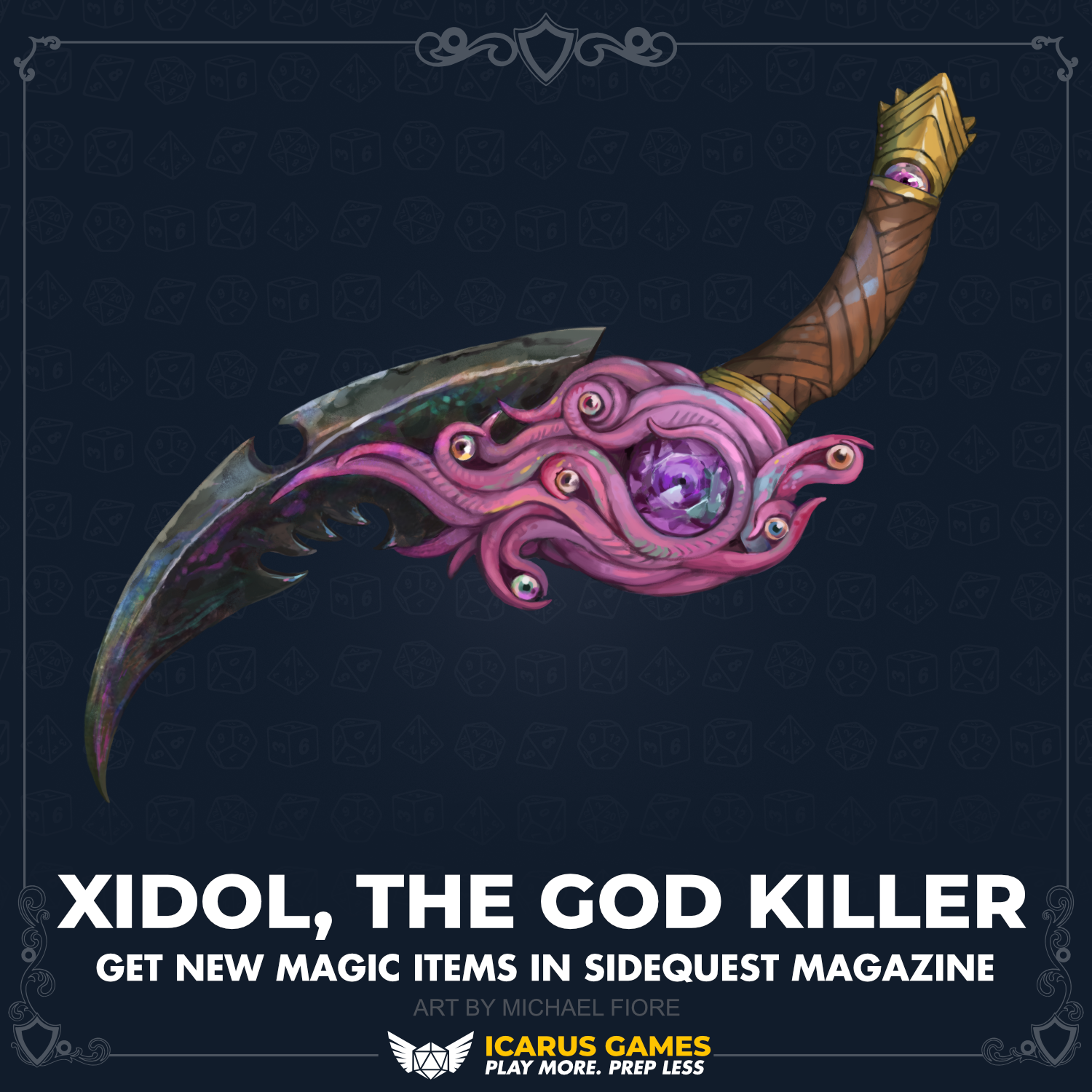Made from the crystalized bones of a dragon-god, and infused with the malevolent spirit of an eye-tyrant, Xidol the God Killer is the kind of weapon every BBEG is going to want to get their hands on.