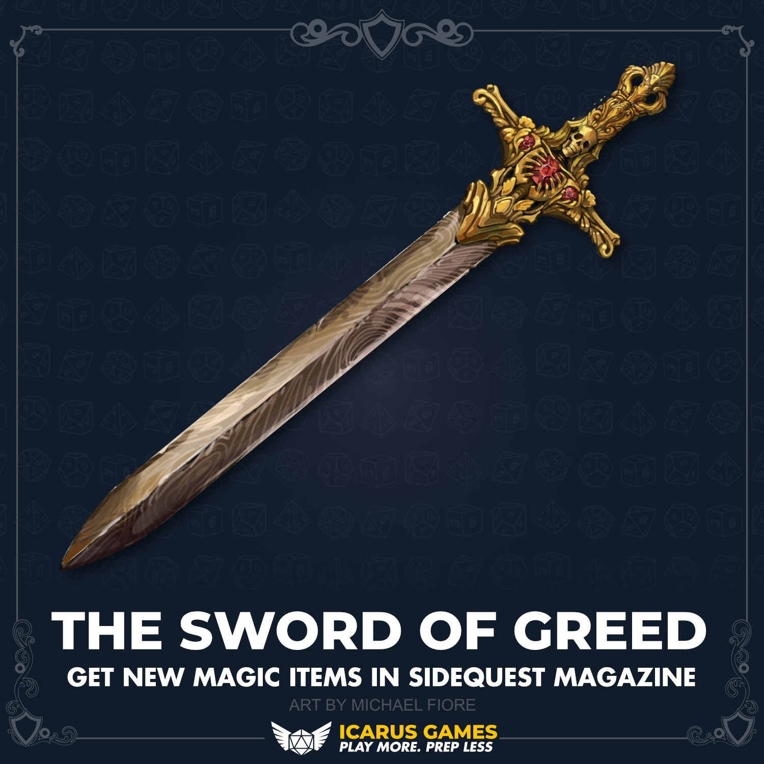 Turn the blood of your enemies into gold with the Sword of Greed, but beware this sword's curse which may leave you a solid gold statue!