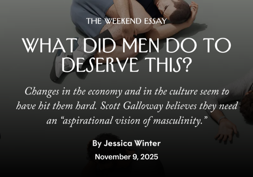 as a man and a father who lost his career in midlife, I can tell you 1) it sucks ass, I feel like shit, and I thought men were supposed to express their feelings??, and 2) I don't blame women, I blame capitalism, put that in your shitty magazine, Conde Nast.