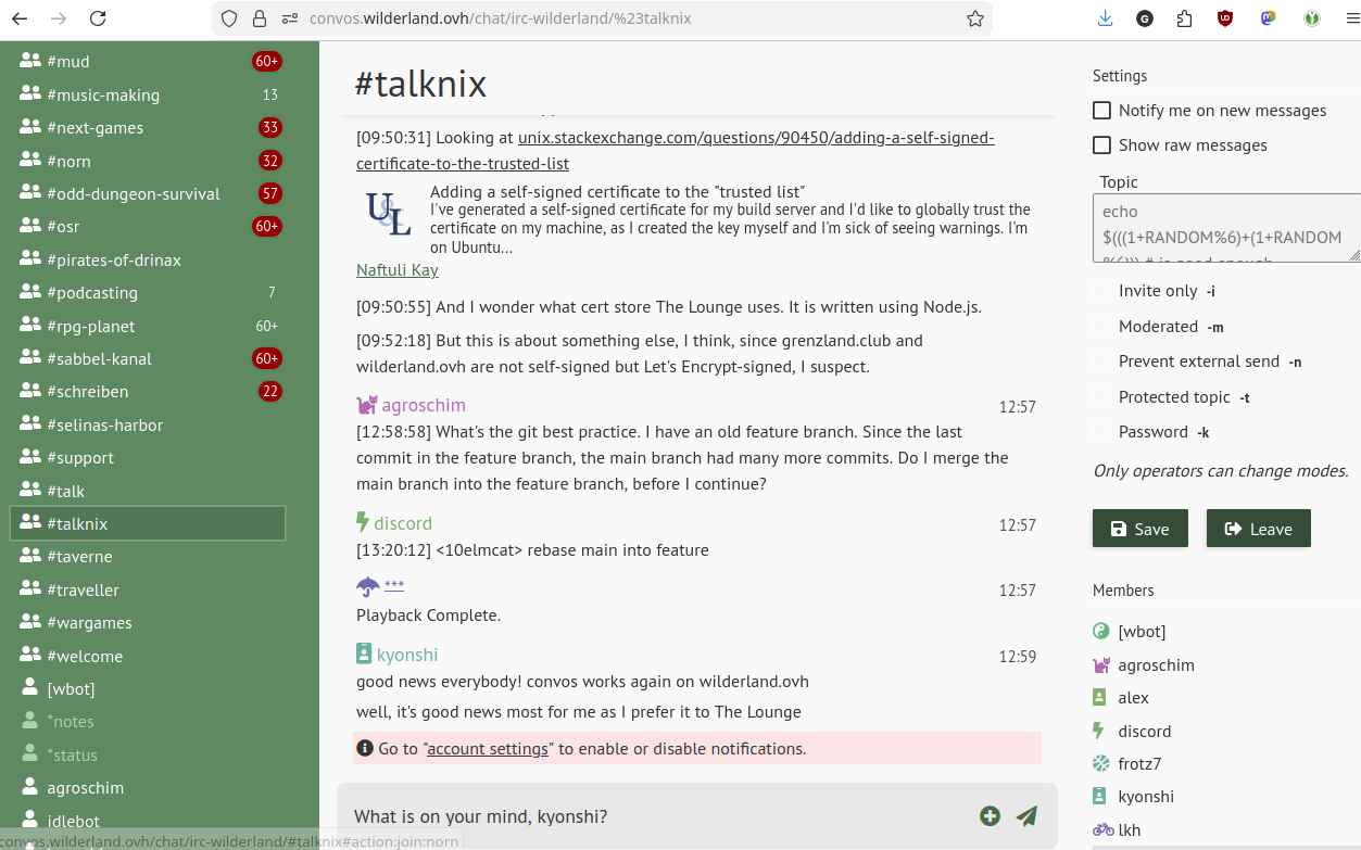 well, good news mostly for me, as I finally managed to get my selfhosted instance of the Convos #IRC web portal running again.