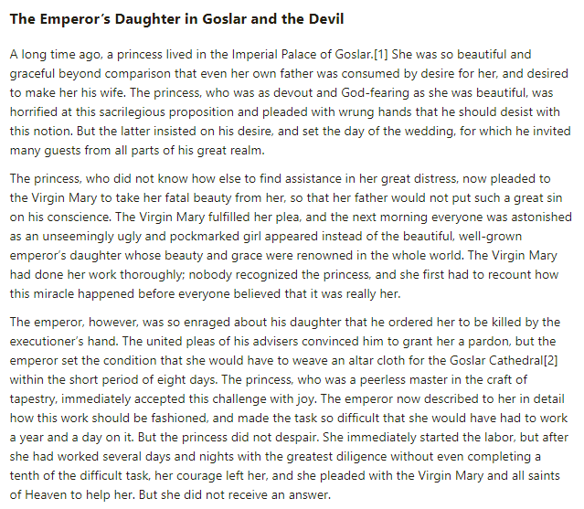 There was once a princess in Goslar who was so beautiful that her own father lusted after her and sought to marry her!