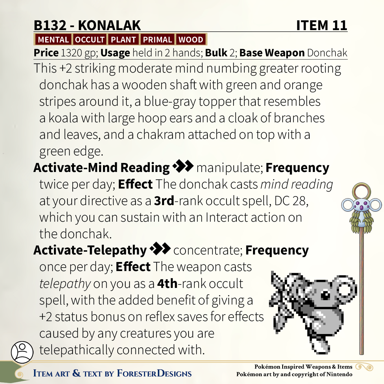 My #TTRPG #Pokemon #MagicItem of the Day in both #DnD and #PF2e, with a #Koala #donchak to help you understand others!