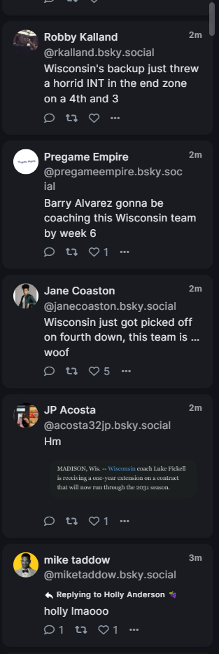 #CFB #CollegeFootball @tim-eagon.dice.camp.ap.brid.gy I'm watching Tennis - but things don't seem to be going too well in your neck of the woods ...